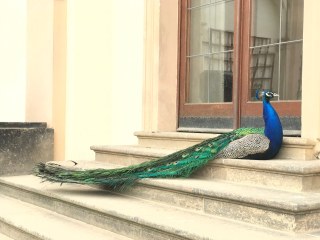 在不遠的階梯上也看到美麗但比較常見的藍孔雀
