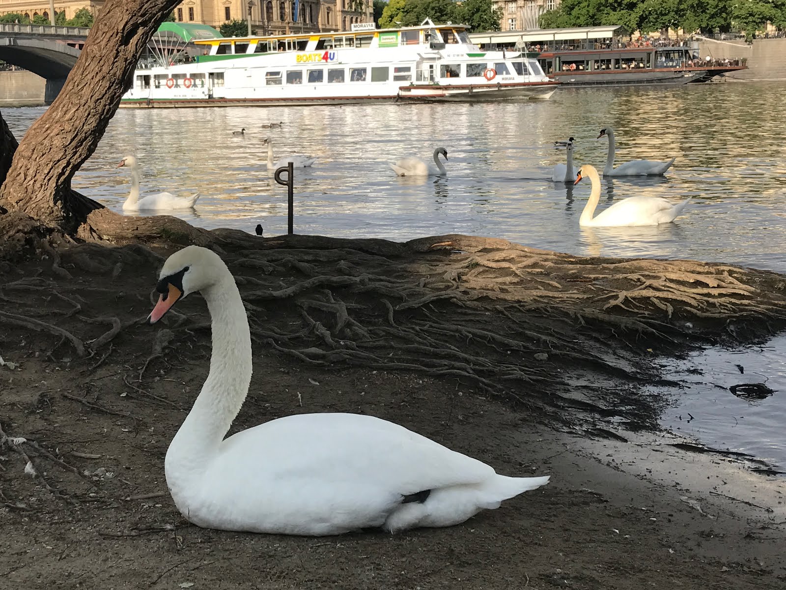橋下好多美麗的天鵝